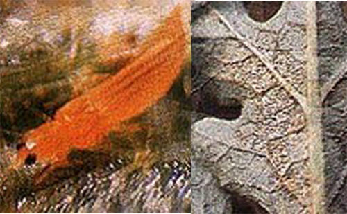 It attacks brinjal mostly during the dry season. They cause browning of leaves, especially on the lower leaf surface, and the scarring of fruit.